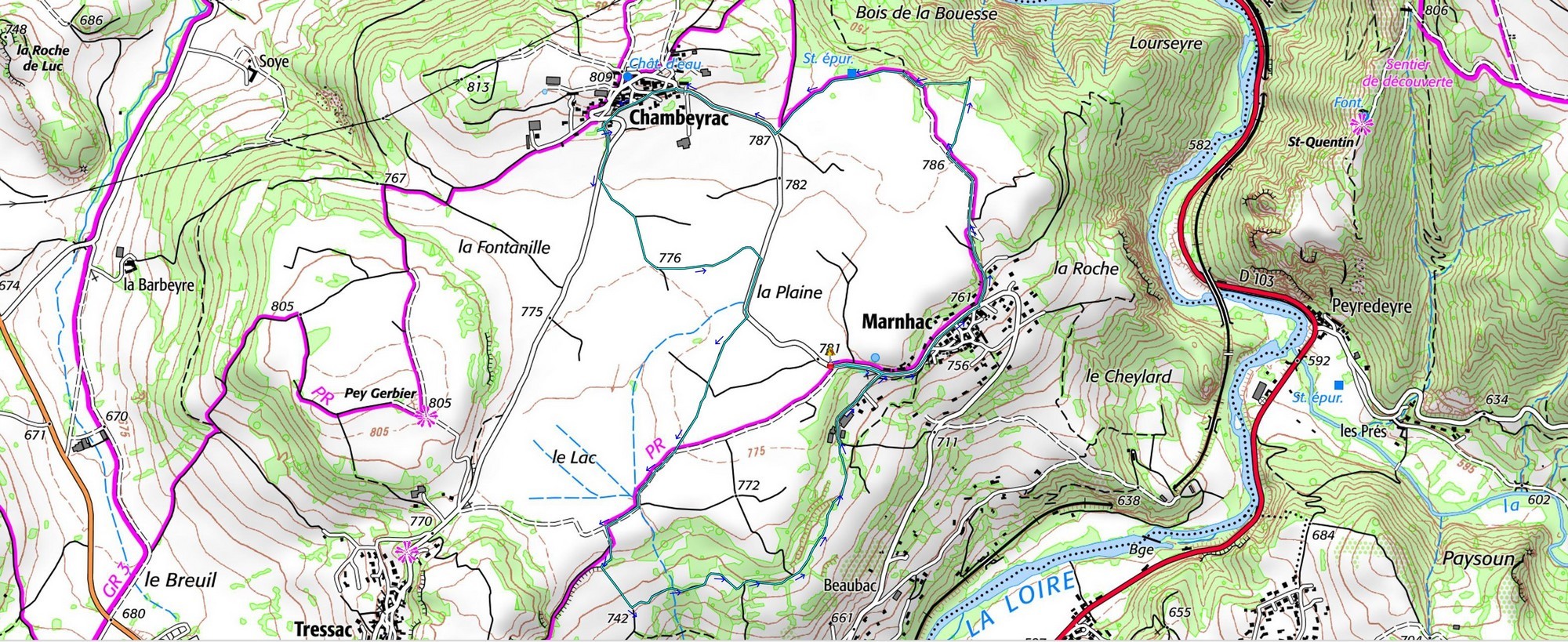 Le passage surélevé à l'entrée de Chambeyrac.     Les fontaines de Chambeyrac.